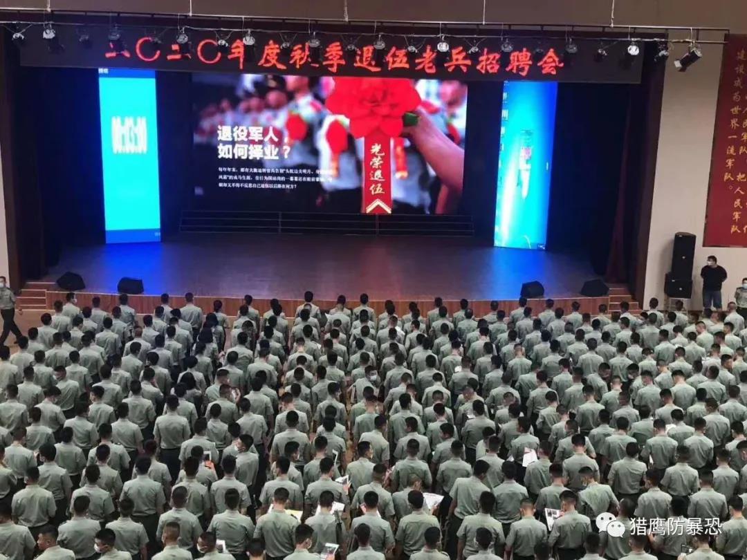 2020年退伍季老兵离队返乡前,北京猎鹰防暴恐技术推广中心参与中解军营招聘会助力2020退役军人后疫情时代就业创业。8月27日至8月31日期间,猎鹰防暴恐走进武警部队选拔退役战士培养防暴恐教官和国际安全官,在后疫情的特殊时期扛起赋予退役军人的时代使命。