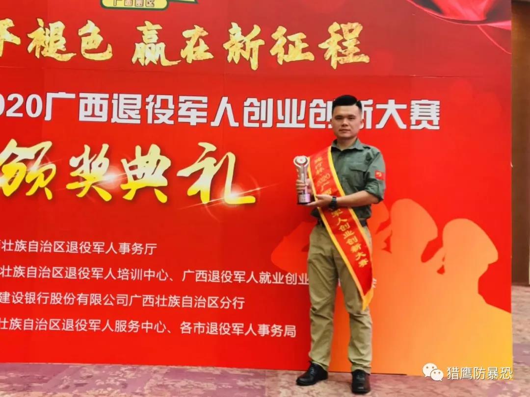 退役军人就业创业首选猎鹰防暴恐,猎鹰防暴恐师资教官班三期学员陈瑜在参加广西退役军人创业创新大赛荣获创新优秀奖,感言猎鹰防暴恐平台让自身找到成就感与人生价值。