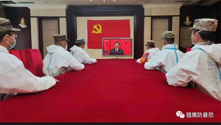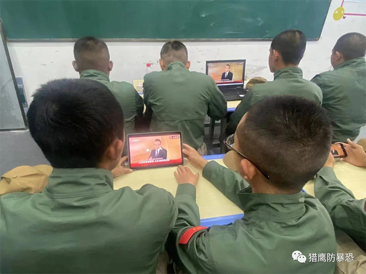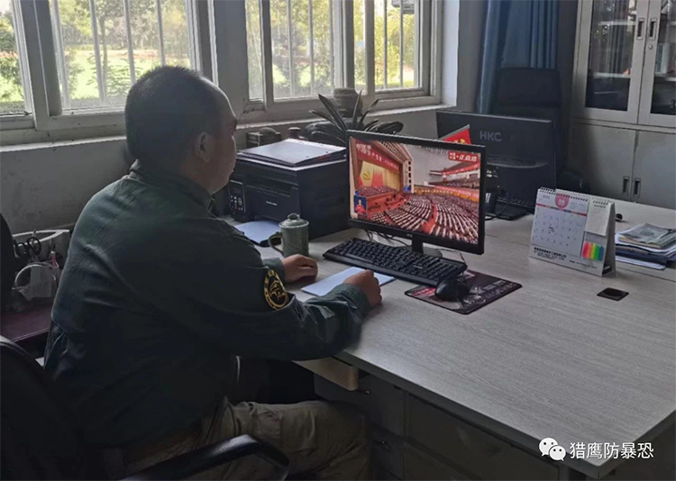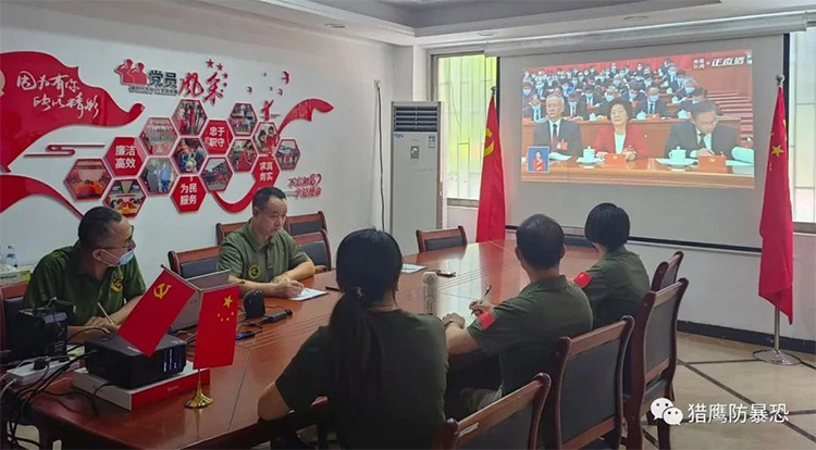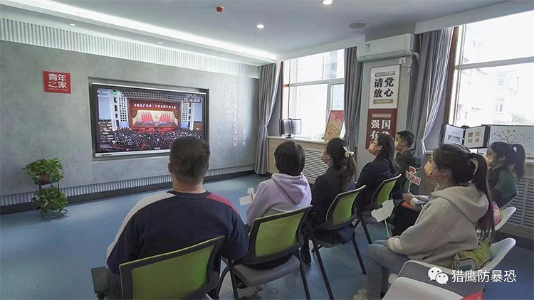 2022年10月16日上午,北京猎鹰防暴恐技术推广中心组织全国各基地教官和学员观看二十大开幕式!