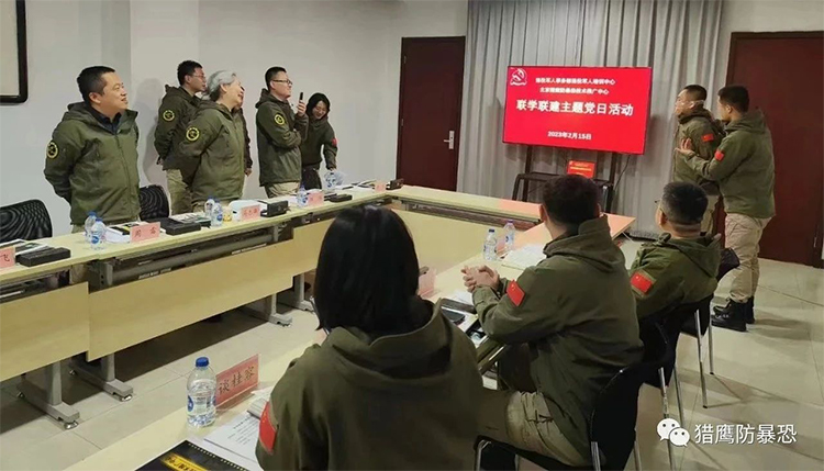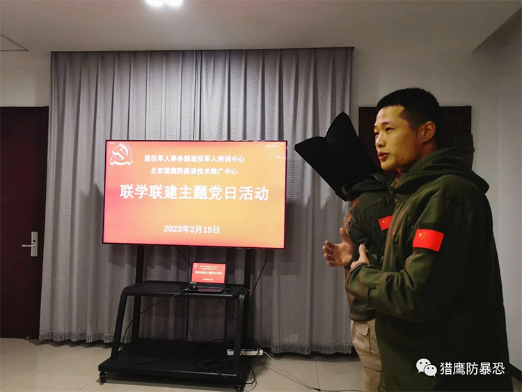 2023年2月15日下午,退役军人事务部退役军人培训中心与北京猎鹰防暴恐技术推广中心在商务部培训中心开展了党建活动。